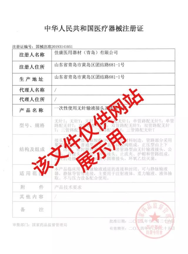 喜訊!祝賀百合醫(yī)械集團(tuán)子公司佳康醫(yī)用取得一次性使用無(wú)針輸液接頭及連接管路注冊(cè)證